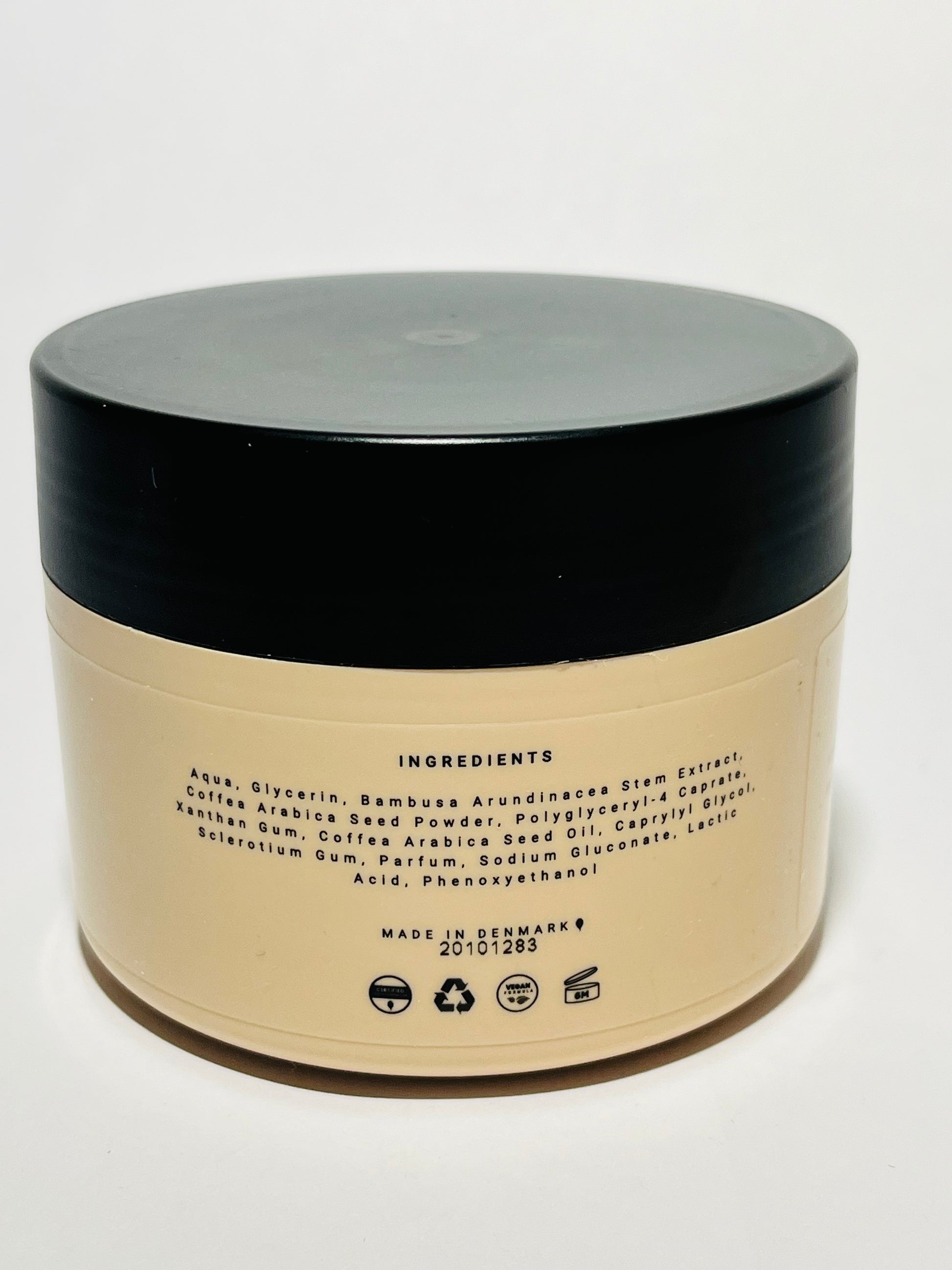Dette er en body scrub som typisk brukes for å eksfoliere huden og gi den en mykere, glattere følelse før f.eks. selvbruning eller fuktighetskrem.